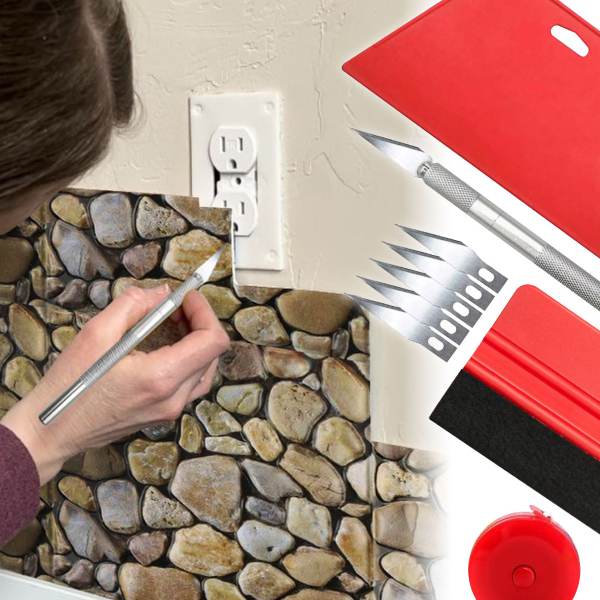 Jednoducho nainštalujte dekoratívnu stenovú obložku. Set obsahuje nástroje na meranie, strihanie a vyhladzovanie.