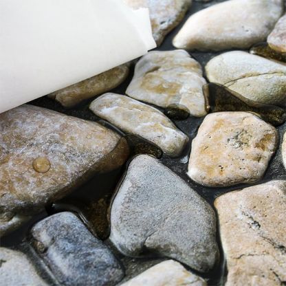 3 mm vystúpený reliéf vytvára skutočný tieň a hĺbku – efekt pôsobí ako kameň z diaľky, nie ako tapeta zblízka. Vodoodolný matný vinylový povrch odoláva vlhkosti, mastnote a poškriabaniu – čistí sa vlhkou handričkou. Vhodné do kuchýň, kúpeľní, chodieb a obývačiek.