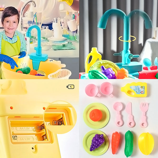 Umývadlo je vybavené skutočnou tečúcou vodou, vďaka čomu sa pri hraní budete cítiť ako v skutočnosti. Tečúca voda dodáva deťom vzrušujúci nádych a pomáha im skúmať a komunikovať s okolitým svetom cez prizmu každodenného života.