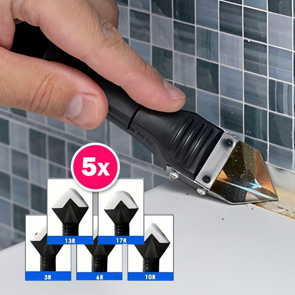 Súprava s 5 nadstavcami na odstraňovanie a úpravu plesnivého silikónu, tmelu a škárovacej hmoty.