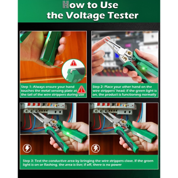 ⚡ Wbudowany próbnik napięcia – natychmiast sprawdzaj obwody bez odkładania narzędzia