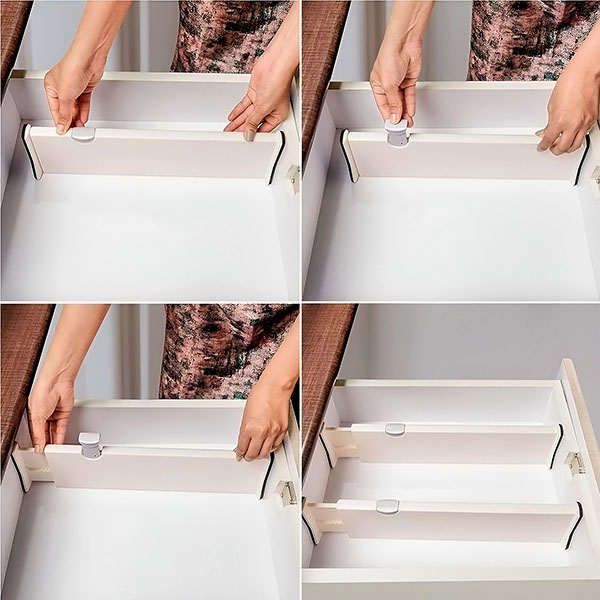 Či už ide o kuchynské náradie, kúpeľňové potreby alebo ponožky v spálni, tieto priečky sa dajú nastaviť od 28 cm do 45 cm, aby pasovali do väčšiny zásuviek. Priestor si môžete prispôsobiť presne podľa svojich potrieb.