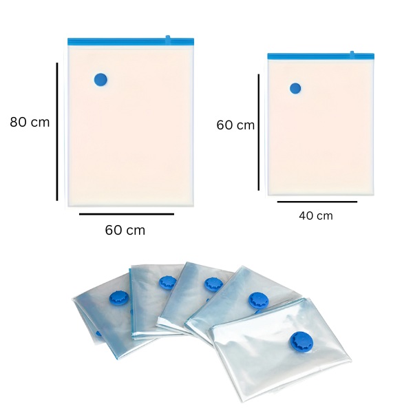 Dochádza vám miesto v skrini? Máte problém zmestiť všetko do kufra? Vákuové úložné vrecia VACKBAGS zmenšia objem vašich vecí až o 80 % a okamžite vám poskytnú miesto na to dôležité. Jednoducho zbaľte oblečenie alebo posteľnú bielizeň, vrecko uzavrite a pomocou akéhokoľvek domáceho vysávača odsajte vzduch – trvá to menej ako 60 sekúnd. Viac miesta, menej neporiadku, žiadne starosti.