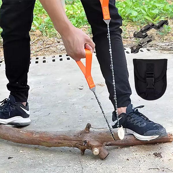 Táto kompaktná a ľahká reťazová píla sa hravo zmestí do batohu. Nevyhnutná pre kempujúcich a turistov na rýchly zber dreva a prípravu táborákov.
