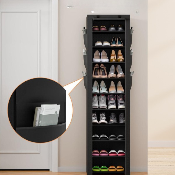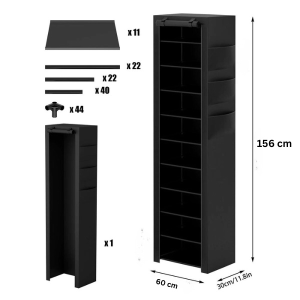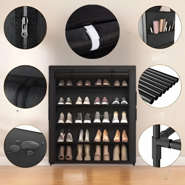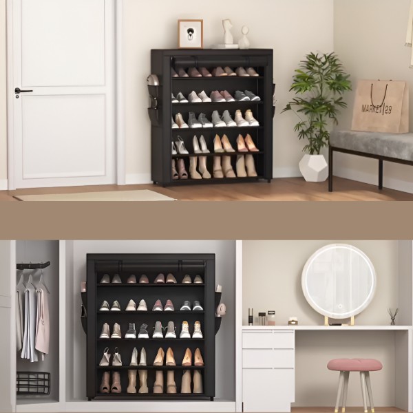 Vybavený prachuvzdorným textilným krytom a zipsovým uzáverom. Tento stojan na topánky zaručuje, že vaše topánky zostanú čisté, chránené pred prachom a nečistotami.