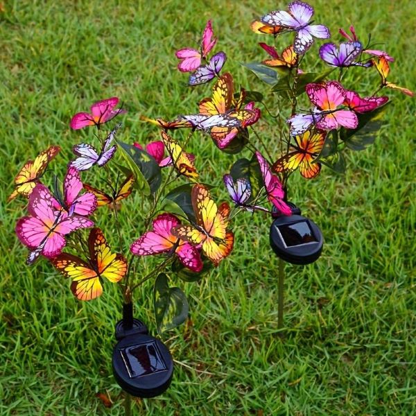Vďaka realistickým motýľom a rôznofarebným rozprávkovým LED svetlám tieto záhradné svetlá na solárny pohon určite oslnia a potešia. Svojím jedinečným dizajnom dodajú vašej záhradnej výzdobe rozmarný nádych. Svetlá LED sú energeticky úsporné a vyžarujú teplú, lákavú žiaru.