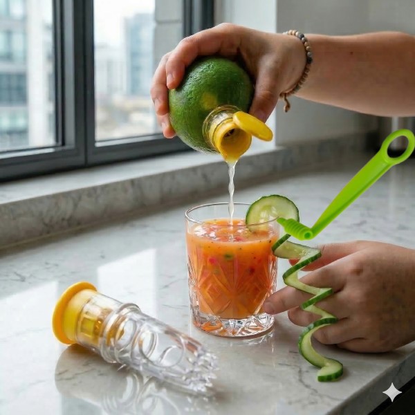 Ručný odšťavovač citrusov a špirálový krájač na chrumkavé pečené zemiaky.