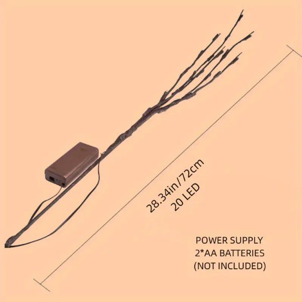 Tieto vŕbové vetvičky svietia pomocou 2 x AA batérií (batérie nie sú súčasťou balenia) a aj po dlhšom používaní vytvárajú len minimálne množstvo tepla.