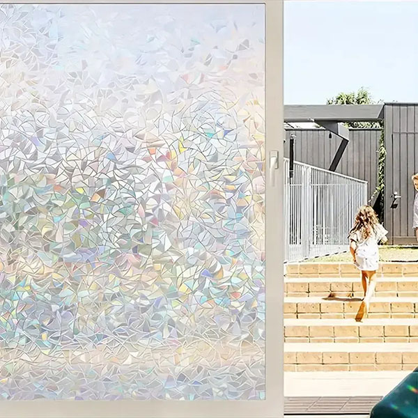 Keď na fóliu dopadá slnečné svetlo, vytvára fascinujúcu dúhu farieb v celej miestnosti, ale neblokuje prirodzené svetlo. Táto fólia funguje dobre v akejkoľvek miestnosti – obývačke, kúpeľni, kancelárii a dokonca aj na sklenených dverách, čo z nej robí univerzálne riešenie pre rôzne priestory.