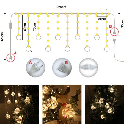 Obsah balenia: Súprava obsahuje: reťaz s 10 LED svietiacimi ozdobami (priemer ozdoby: 8 cm)