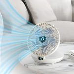 Tento nabíjateľný ventilátor sa dodáva s veľkokapacitnou 5V/2A batériou, ktorá potrebuje na úplné nabitie iba 3 – 4 hodiny a môže fungovať 4 – 12 hodín v závislosti od nastavenia rýchlosti vetra.