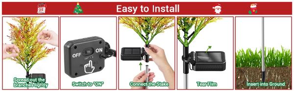 Nový dizajn 2025 – V reakcii na spätnú väzbu od našich zákazníkov sme optimalizovali a zlepšili mnohé funkcie. Solárny svetelný strom je vyrobený z vysoko kvalitného ABS materiálu a svojím vzhľadom pripomína borovicu a cyprus. Automaticky sa rozsvieti a svieti dvoma rôznymi spôsobmi, aby splnil všetky vaše potreby.